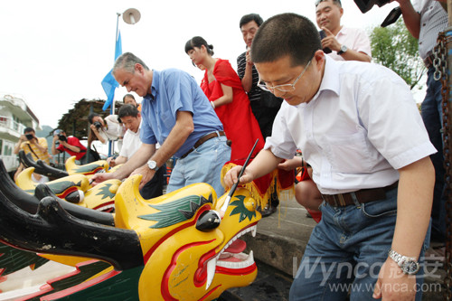 瀏覽量:6186 6月9日下午,新安集團兩年一屆的新安龍舟賽在新安江上激情上演。本屆龍舟賽共有農(nóng)化事業(yè)部、農(nóng)藥廠、化工二廠、有機硅事業(yè)部、有機硅廠、硅酮密封膠廠、熱電廠、集團機關(guān)聯(lián)隊、采購中心、新安物流、新安包裝、新安邁圖、開化合成、開化元通、鎮(zhèn)江江南、泰興興安等16支代表隊參賽。經(jīng)過激烈角逐,熱電廠代表隊獲得了一等獎;開化元通和新安物流代表隊獲得了二等獎;有機硅廠、開化合成、集團機關(guān)三支代表隊獲得了三等獎。圖為在龍舟賽前的開幕式上,集團領(lǐng)導(dǎo)為龍舟點睛。