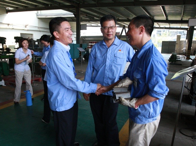 瀏覽量:7464 7月25日,集團(tuán)黨委書記潘秋友、總部黨委書記陸冬云和所屬支部書記頂著烈日,帶著全體黨員的心意,先后來到白南山留守組、馬目園區(qū)各工廠和部門,將一箱箱加多寶、鹽汽水送到員工手中,向他們道一聲:“你們辛苦了,注意防暑降溫!”