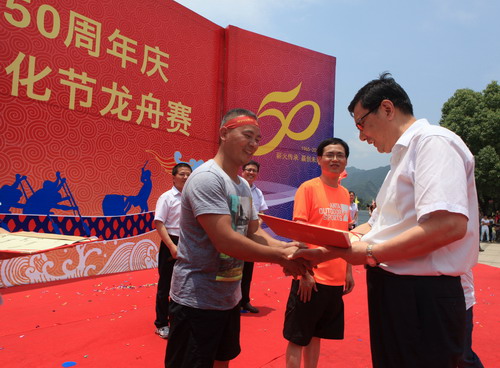瀏覽量:4363 6月20日,新安集團(tuán)創(chuàng)建50周年慶暨第四屆新安文化節(jié)龍舟賽在新安江上舉行,共有16支代表隊(duì)參加本次競(jìng)賽。